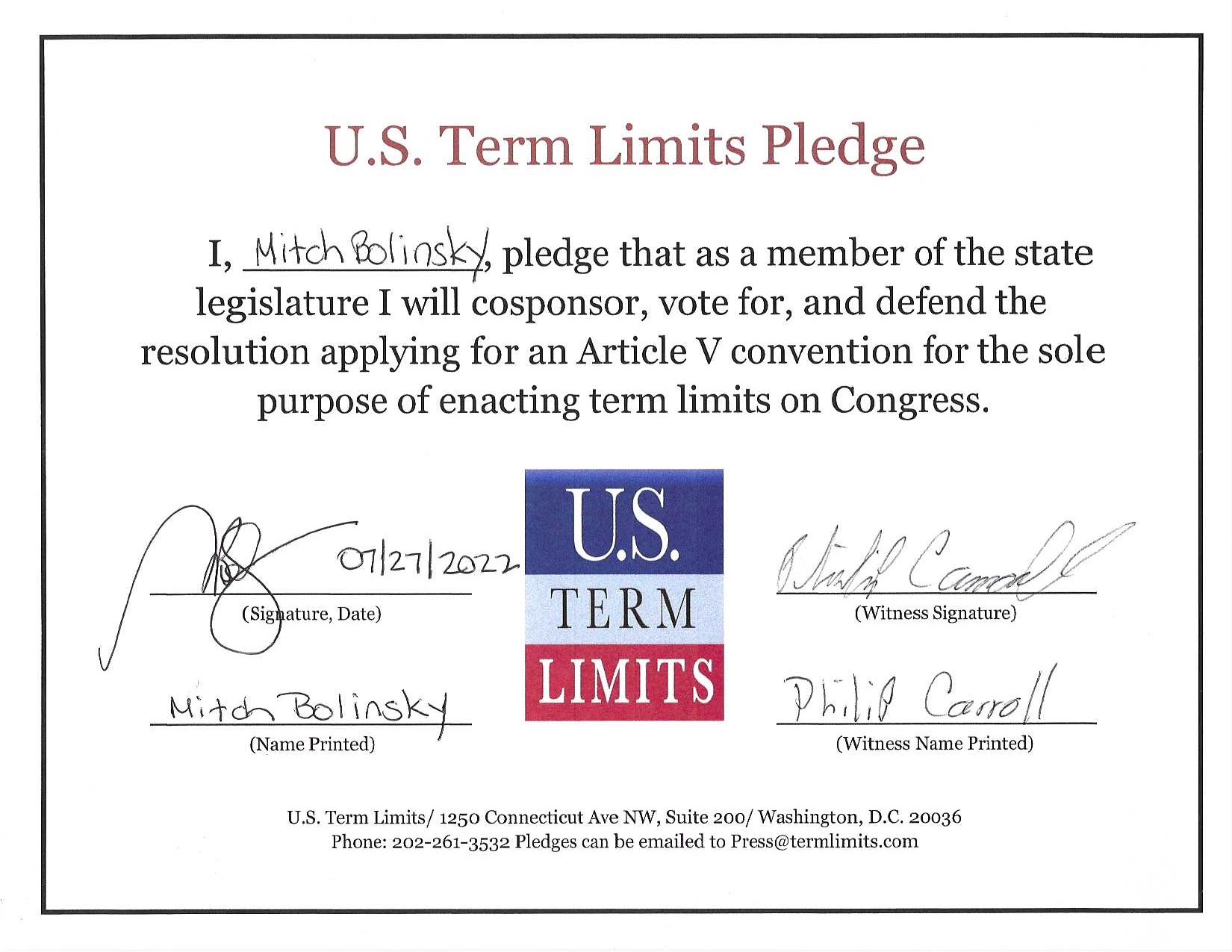 Rep. Mitch Bolinsky Pledges to Support Congressional Term Limits