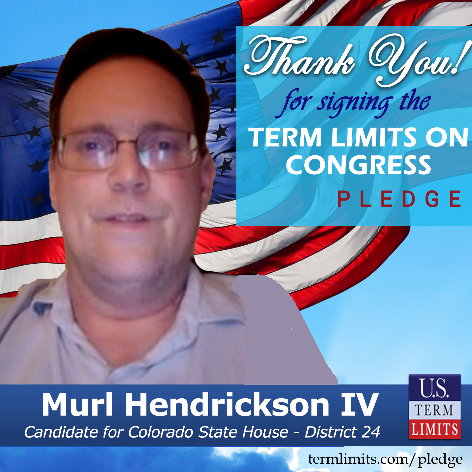 Arvada, CO – U.S. Term Limits (USTL), the leader in the national, non-partisan movement to limit terms for elected officials, is gathering support from state lawmakers across the nation. Its mission is to get 34 states to apply for an amendment proposal convention specific to term limits on Congress. Colorado state house candidate, Murl Hendrickson (District 24), has committed support for term limits on Congress by signing the Term Limits Convention Pledge.