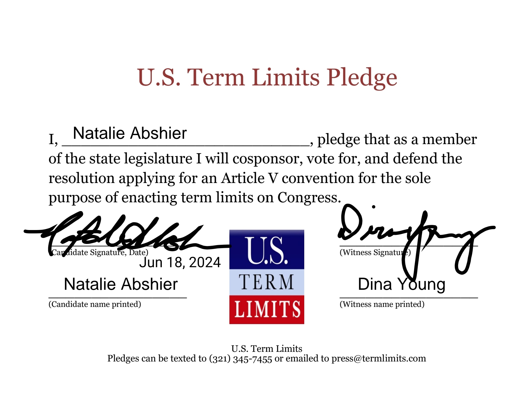 Natalie Abshier Pledges to Support Congressional Term Limits