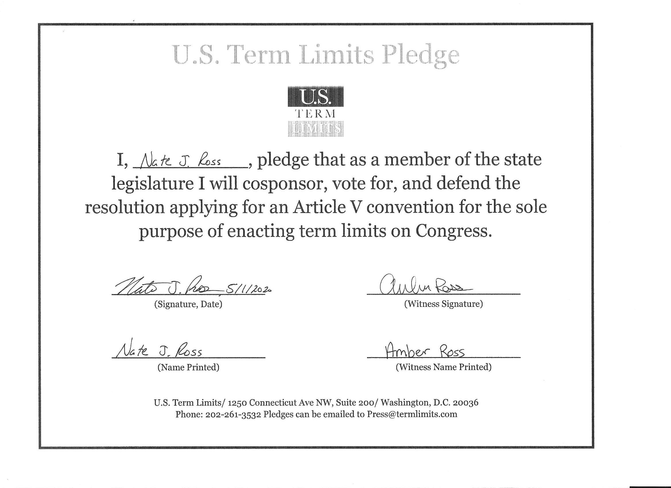 USTL President, Philip Blumel, commented on Ross’s pledge saying, “Nate’s support of term limits shows that there are individuals who are willing to listen to the majority of voters who want term limits. America needs a Congress that will be served by citizen legislators, not career politicians.”