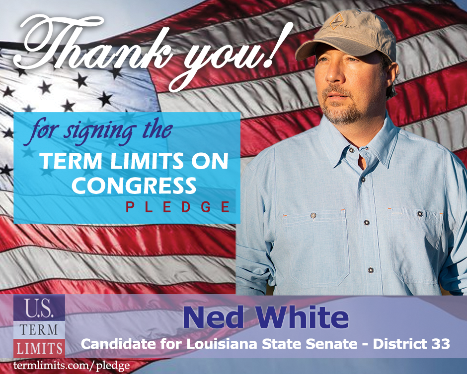 Farmerville, LA – U.S. Term Limits (USTL), the leader in the national, non-partisan movement to limit terms for elected officials, is gathering support from state lawmakers across the nation. Its mission is to get 34 states to apply for an amendment proposal convention specific to term limits on Congress. Louisiana state senate candidate, Ned White (district 33), has committed support for term limits on Congress by signing the Term Limits Convention pledge.