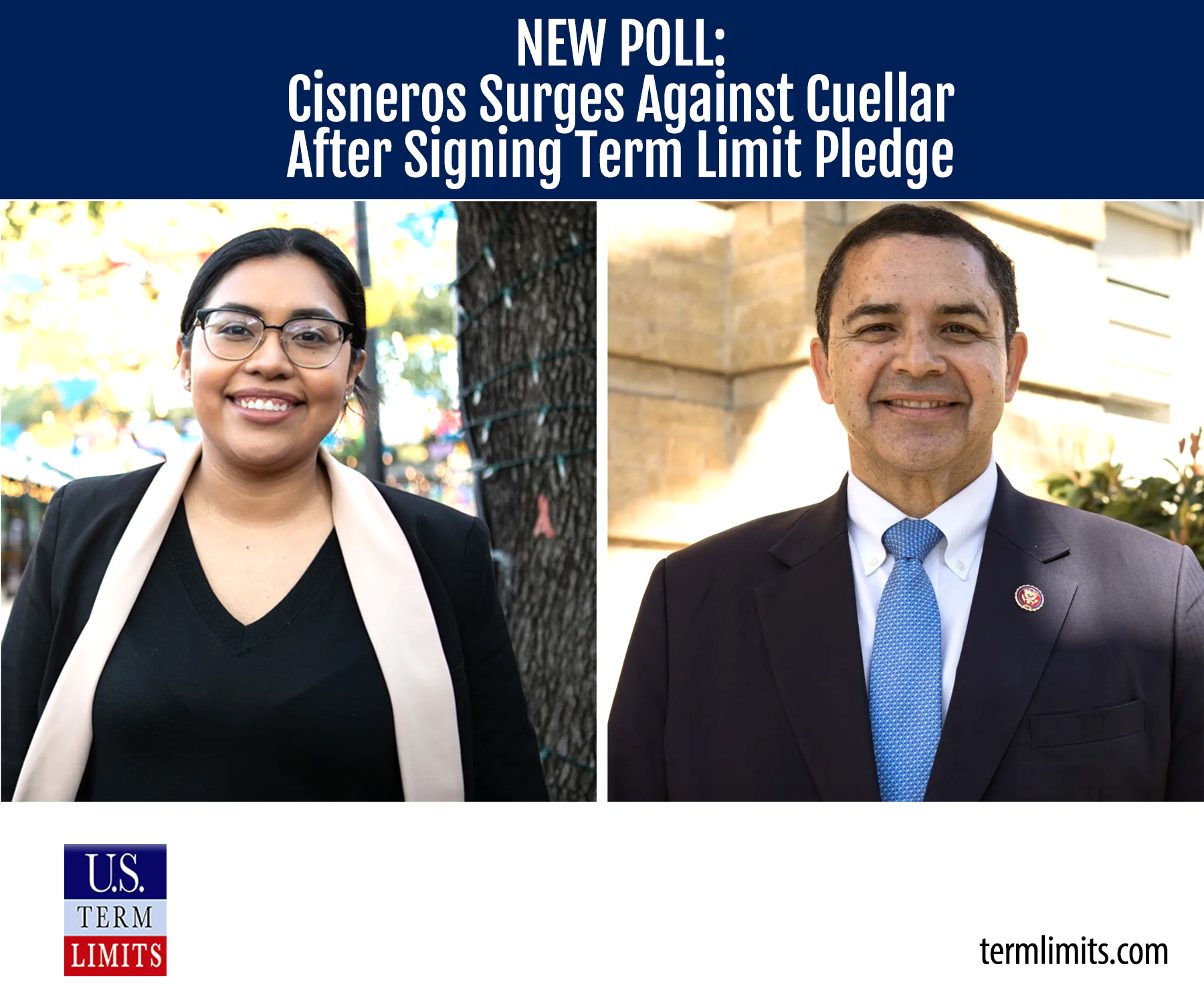 According to the poll, which was conducted by RMG Research, Cisneros currently edges out Cuellar 36%-35%, which is within the margin of error. But when voters are informed that Cisneros has signed the pledge to support a constitutional amendment for term limits on Congress – while Cuellar opposes term limits – Cisneros jumps out to a 35-point lead (57%-22%).