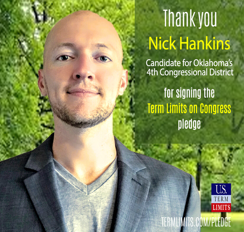 Washington D.C. – U.S. Term Limits (USTL), the leader in the non-partisan national movement to limit terms for elected officials, praises 2024 U.S. House candidate for Oklahoma, Nick Hankins (district 4), for signing the pledge for an amendment to term limit Congress. Previously, candidate Andrew Hayes also signed the pledge.