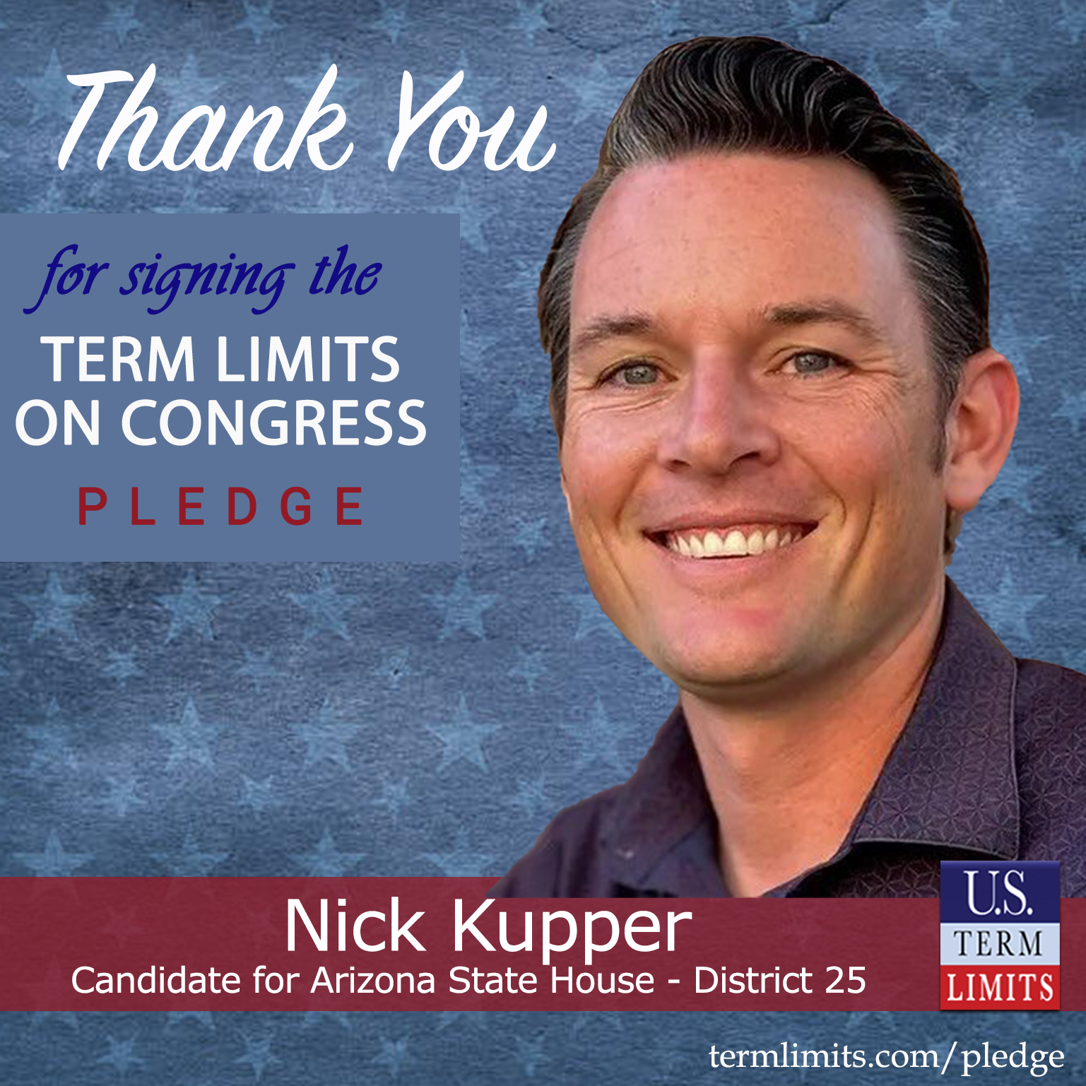 Yuma, AZ – U.S. Term Limits (USTL), the leader in the national, non-partisan movement to limit terms for elected officials, is gathering support from state lawmakers across the nation. Its mission is to get 34 states to apply for an amendment proposal convention specific to term limits on Congress. Arizona state house candidate, Nick Kupper (District 25), has committed support for term limits on Congress by signing the term limits convention pledge. Previously, candidates Steve Markegard, Gary Garcia Snyder, and Nathan Madden also signed the pledge.