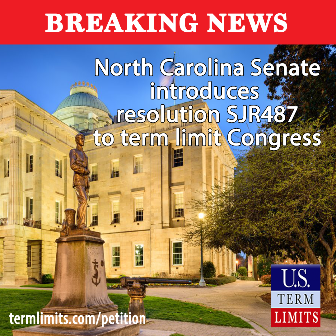 The North Carolina House passed the joint measure (HJR151) last month. SJR487, if passed, would put Congress on notice that North Carolina plans to invoke Article V of the U.S. Constitution whereby state legislatures can team up for a convention to propose a congressional term limits amendment.