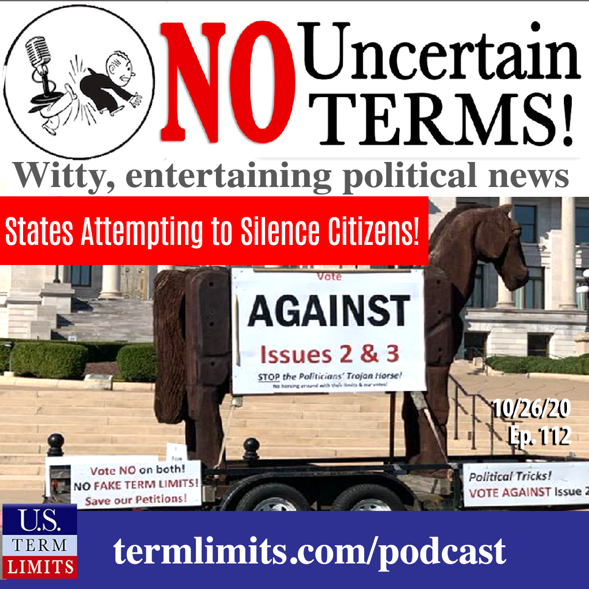 00:03 Philip Blumel: States are taking the initiative away. Hi, I’m Philip Blumel. Welcome to No Uncertain Terms, the official podcast of the Term Limits Movement for the week of October 26, 2020.