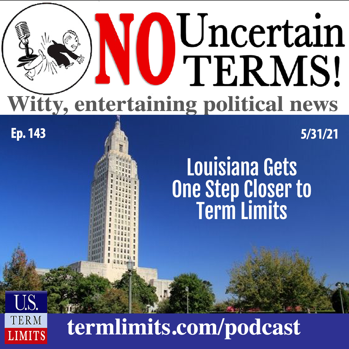 Philip Blumel: The Louisiana House. Boom. Hi, I’m Philip Blumel. Welcome to No Uncertain Terms, the official podcast for the Term Limits Movement for the week of May 31st, 2021.