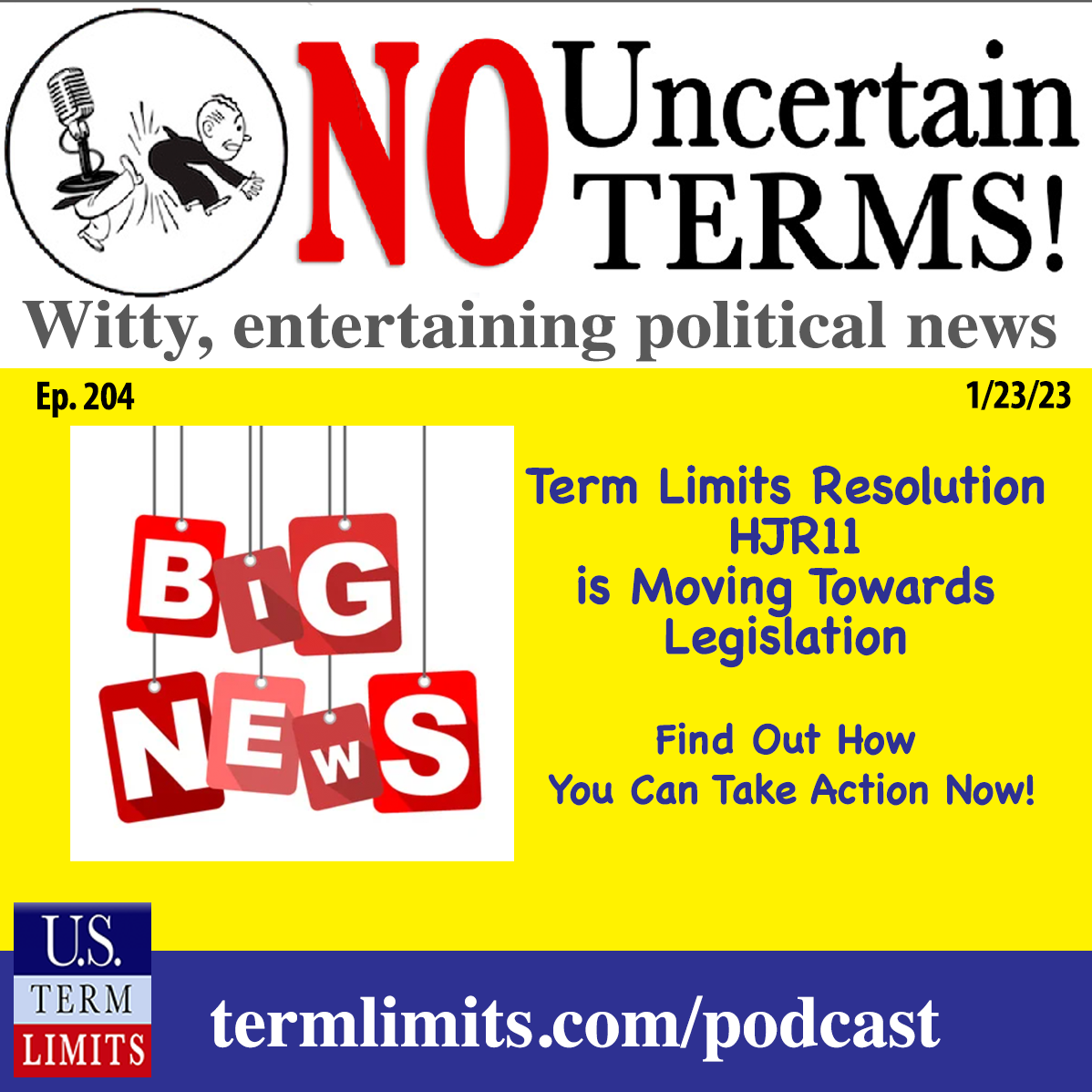 Nick Tomboulides: Welcome back to No Uncertain Terms, I’m Nick Tomboulides. Just a quick note for our listeners that in the next few weeks, we might be tweaking the format of this show. We don’t know exactly what new direction we’re gonna go in but we can say with confidence that whatever we select, whatever we decide to do will bring the latest and greatest term limits news and content to your podcasting platform. We have the audience’s best interest in mind and we might be retooling it, we might be going with some new segments, so stay tuned for that in the future. For now though, we got a few items to talk about, resolutions. New year’s resolutions are being filed in Congress and the states. It’s a new era for term limits starting at the federal level, very exciting news. The US term limits Amendment has officially been filed in the US House by Representative Ralph Norman of South Carolina. It is going to be House Joint Resolution 11, HJR 11. The bill number changes now since we’re in a new session, but this is the term limits bill we need to rally the nation around. It’s three terms in the House, two terms in the Senate, the current members are not grandfathered in and this is a lifetime limit.