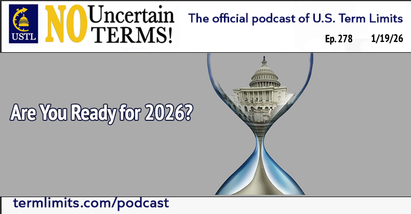 Philip Blumel: Thanks for joining us for another episode of No Uncertain Terms. The Term Limits Convention bills are moving through the state legislatures, this could be a breakthrough year for the term limits movement. To check on the status of the term limits Convention Resolution in your state, go to termlimits.com/takeaction. There, you will see if it has been introduced and where it stands in the committee process on its way to the floor vote. If there’s action to take, you’ll see a Take Action button by your state, click it. This will give you the opportunity to send a message to the most relevant legislators urging them to support the legislation, they have to know you’re watching. That’s termlimits.com/takeaction. If your state has already passed the term limits Convention Resolution or the bill’s not been introduced in your state, you can still help. Please consider making a contribution to US term limits. It is our aim to hit the reset button on the US Congress and you can help. Go to termlimits.com/donate, termlimits.com/donate. Thanks, we’ll be back next week.