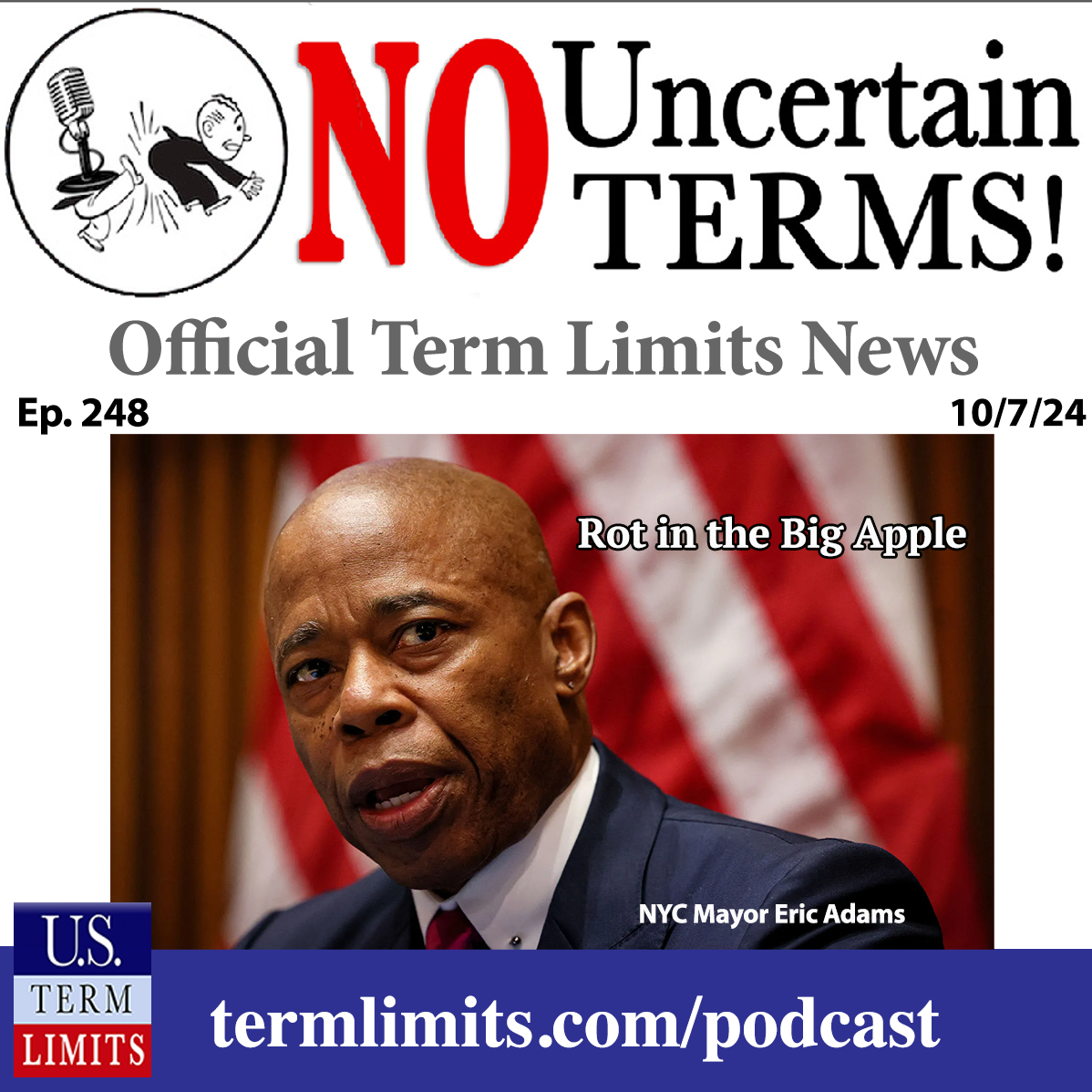 Philip Blumel: Rot in the big apple, yet another term limits opponent indicted on corruption charges. Hi, I’m Philip Blumel. Welcome to No Uncertain Terms, the official podcast of the term Limits Movement. This is episode number 248, published on October 7th, 2024.