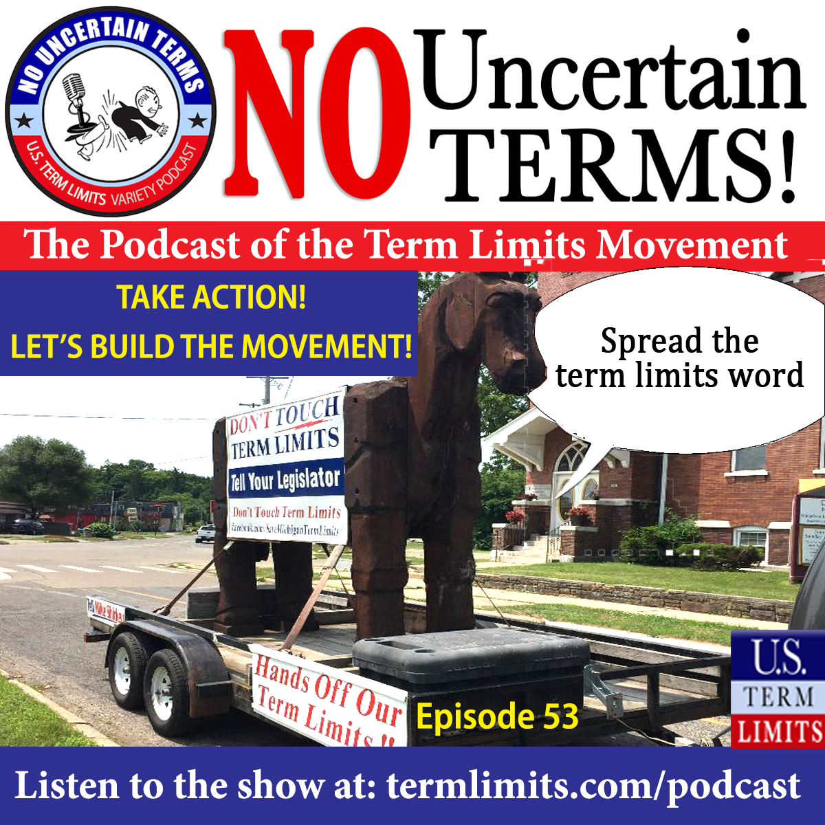 Philip Blumel: Thanks for joining us for the first episode of our second year, episode number 53. Our mission this week is to push presidential candidates to talk about term limits. Do you have a favorite candidate or candidates in the ring? Go to their website, or better yet, call or speak to them in person if you get a chance and urge them to call for congressional term limits, for the good of the nation and also for the good of their campaigns. Until next week.