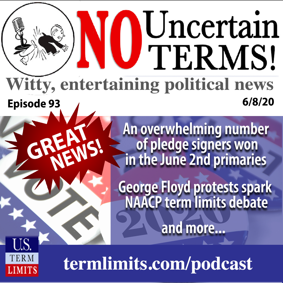 Primaries and protests. Hi, I’m Philip Blumel. Welcome to No Uncertain Terms, the official podcast of the term limits movement for the week of June 8th, 2020.