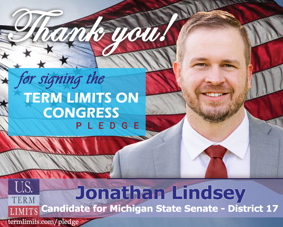 The U.S. Term Limits amendment pledge is provided to every announced candidate for federal office. It reads, “I pledge that as a member of Congress, I will cosponsor and vote for the U.S. Term Limits amendment of three (3) two-year House terms and two (2) six-year Senate terms and no longer limit.”