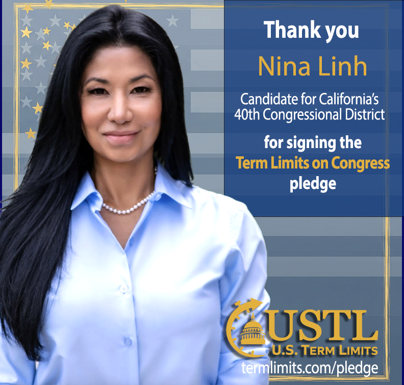 Washington D.C. – U.S. Term Limits (USTL), the leader in the non-partisan national movement to limit terms for elected officials, praises 2026 U.S. House of Representatives candidate for California, Nine Linh (district 40), for signing the pledge for an amendment to term limit Congress. Previously, candidates Esther Varet, Joe Kerr and Incumbent Rep. Young Kim also signed the pledge.