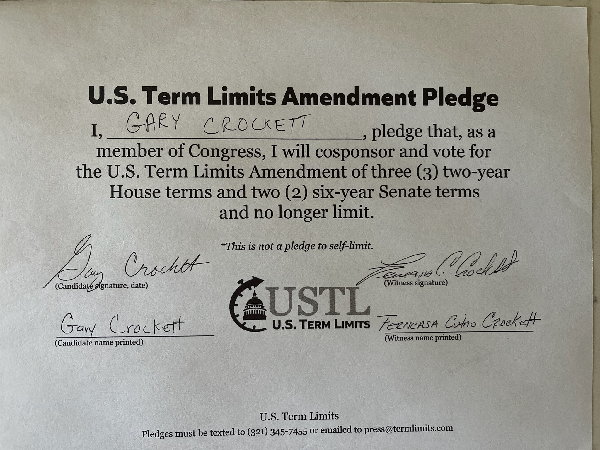 Washington D.C. – U.S. Term Limits (USTL), the leader in the non-partisan national movement to limit terms for elected officials, praises 2026 U.S. Senate candidate for Louisiana, Gary Crockett, for signing the pledge for an amendment to term limit Congress. Previously, candidates Julia Letlow, John Fleming and incumbent Bill Cassidy also signed the pledge.
