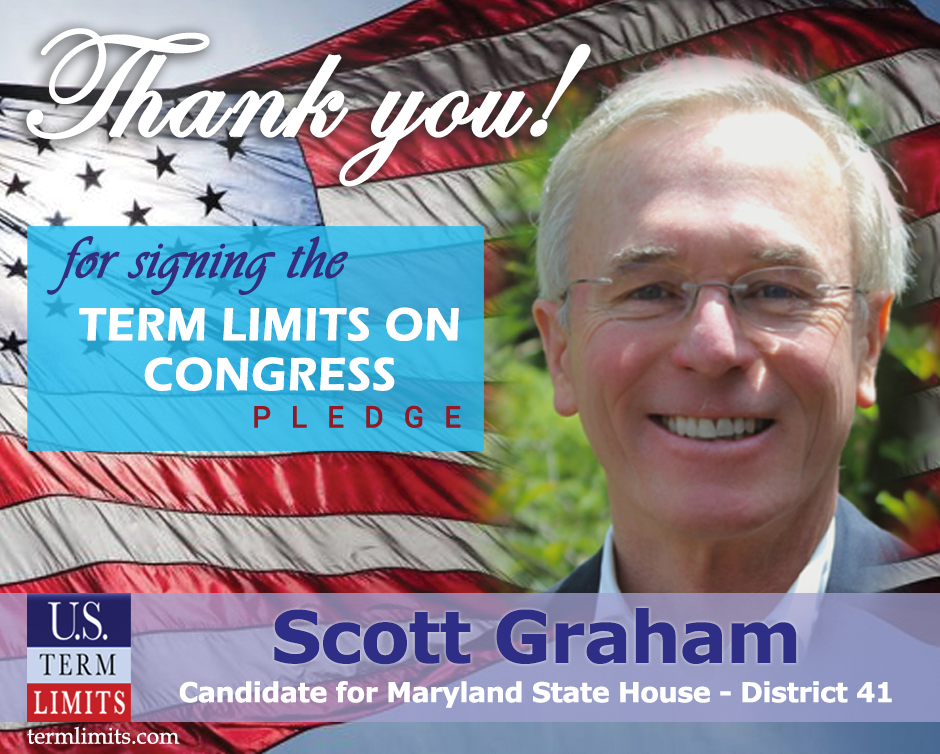 The U.S. Term Limits pledge is provided to candidates and members of state legislatures. It reads, “I pledge that, as a member of the state legislature, I will cosponsor, vote for, and defend the resolution applying for an Article V convention for the sole purpose of enacting term limits on Congress.”
