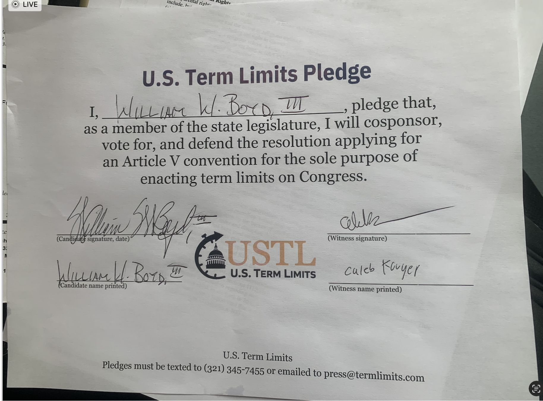 Tomboulides noted, “More than 87% of Americans have rejected the career politician model and want to replace it with citizen leadership. The way to achieve that goal is through a congressional term limits amendment. These signers know this and are willing to work to make sure we reach our goal.”