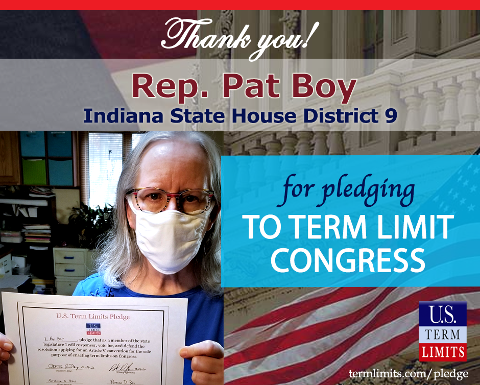 Westville, IN – U.S. Term Limits (USTL), the leader in the national, non-partisan movement to limit terms for elected officials, is gathering support from state lawmakers across the nation. Its mission is to get 34 states to apply for an amendment proposal convention specific to term limits on Congress. 2020 Indiana state house Rep. Pat Boy (district 9), has committed support for term limits on Congress by signing the Term Limits Convention pledge. Previously, candidate Dion Bergeron also signed the pledge.