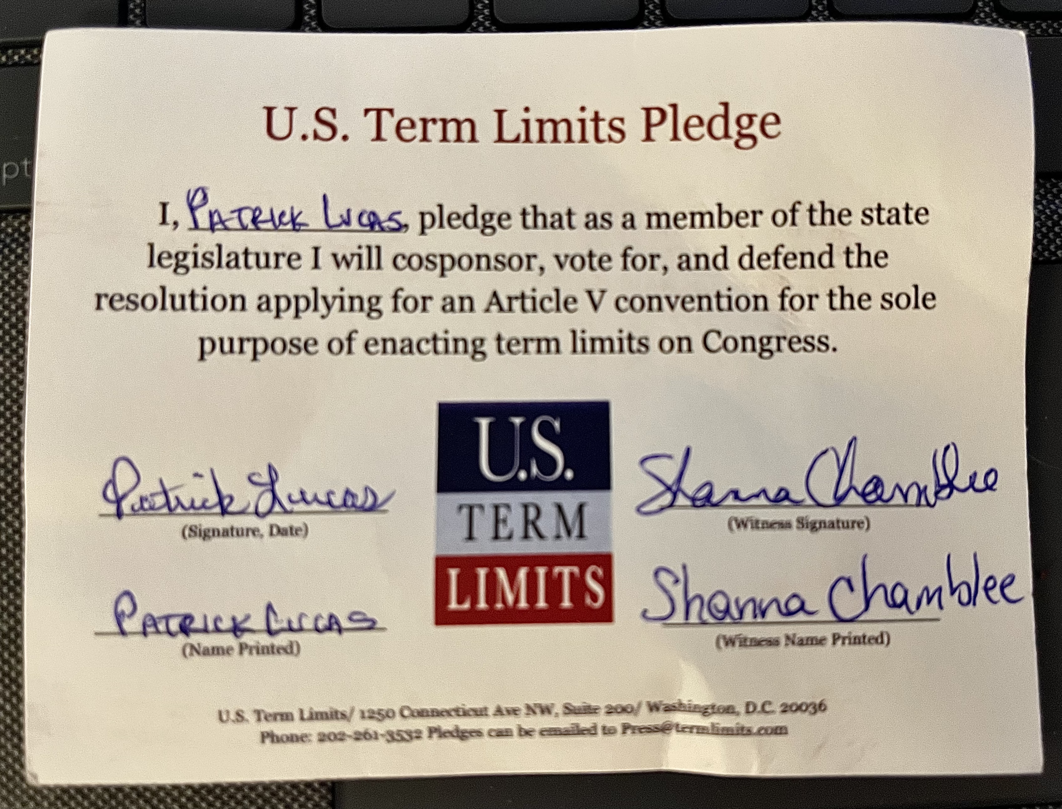 Rep. Patrick Lucas Pledges to Support Congressional Term Limits