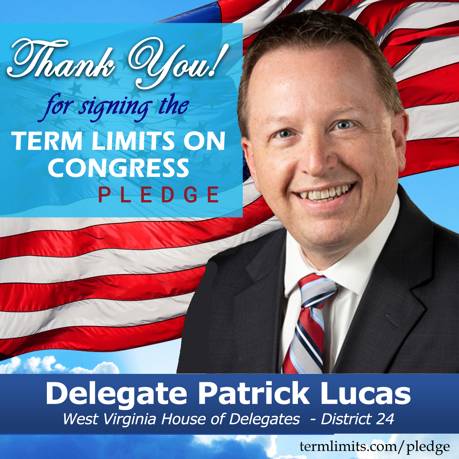 Huntington, WV– U.S. Term Limits (USTL), the leader in the national, non-partisan movement to limit terms for elected officials, is gathering support from state lawmakers across the nation. Its mission is to get 34 states to apply for an amendment proposal convention specific to term limits on Congress. West Virginia state house delegate Patrick Lucas (District 24), has committed support for term limits on Congress by signing the term limits convention pledge.