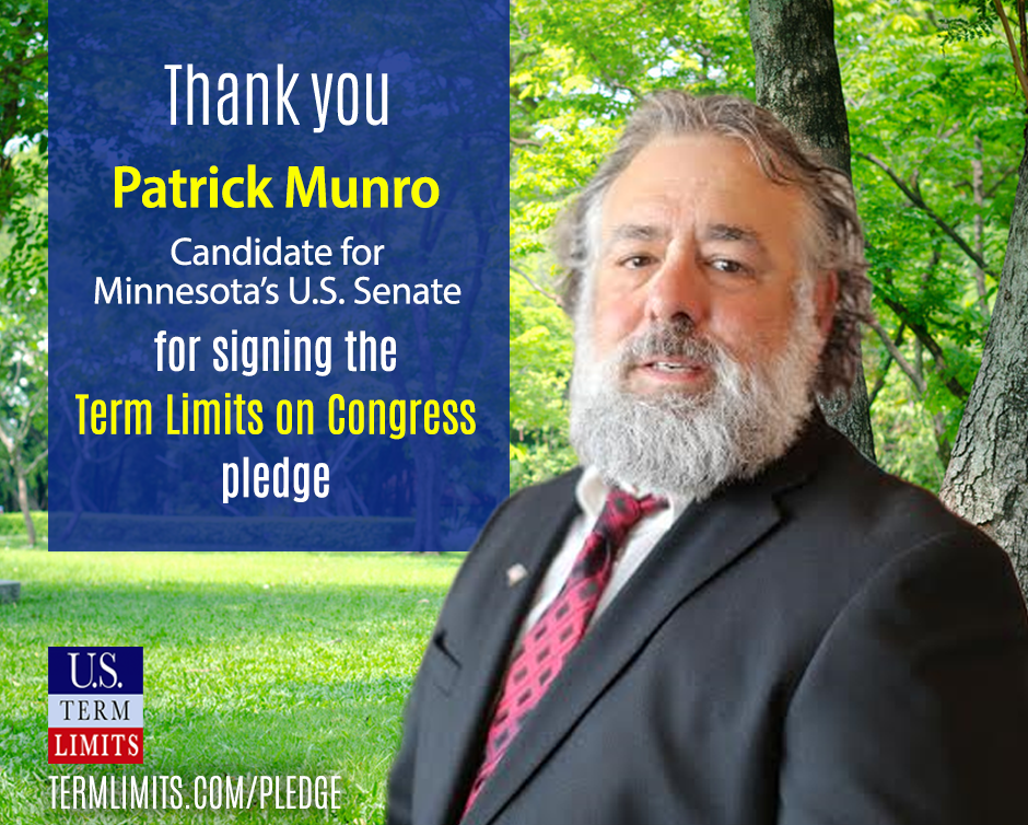 Washington D.C. – U.S. Term Limits (USTL), the leader in the non-partisan national movement to limit terms for elected officials, praises 2024 U.S. Senate candidate for Minnesota, Patrick Munro, for signing the pledge for an amendment to term limit Congress. Previously, candidate Joyce Lacey also signed the pledge.