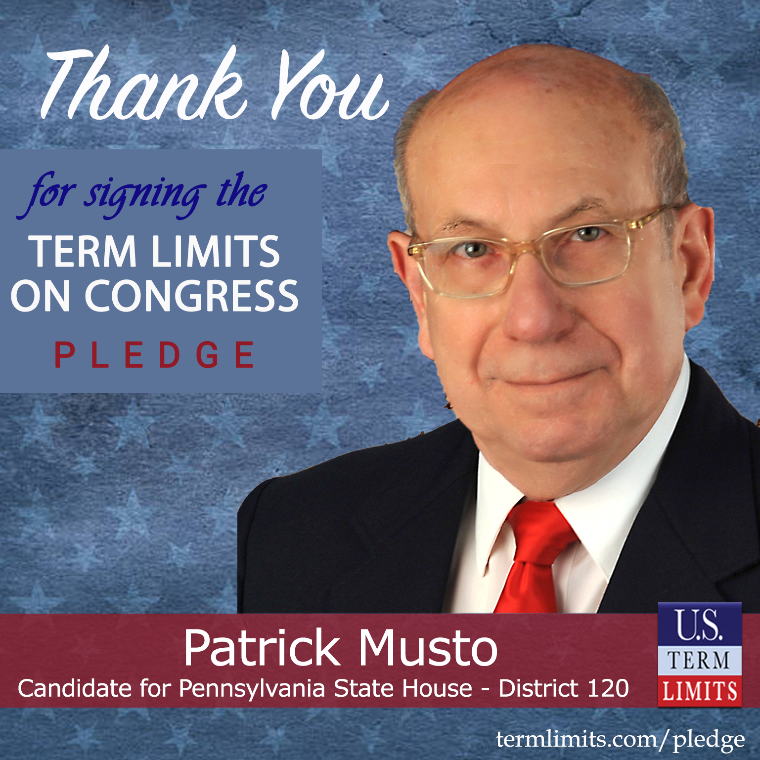 USTL President, Philip Blumel, commented on Musto’s pledge saying, “Patrick’s strong support of term limits shows that there are individuals who are willing to listen to the majority of voters who want term limits. America needs a Congress that will be served by citizen legislators, not career politicians.”