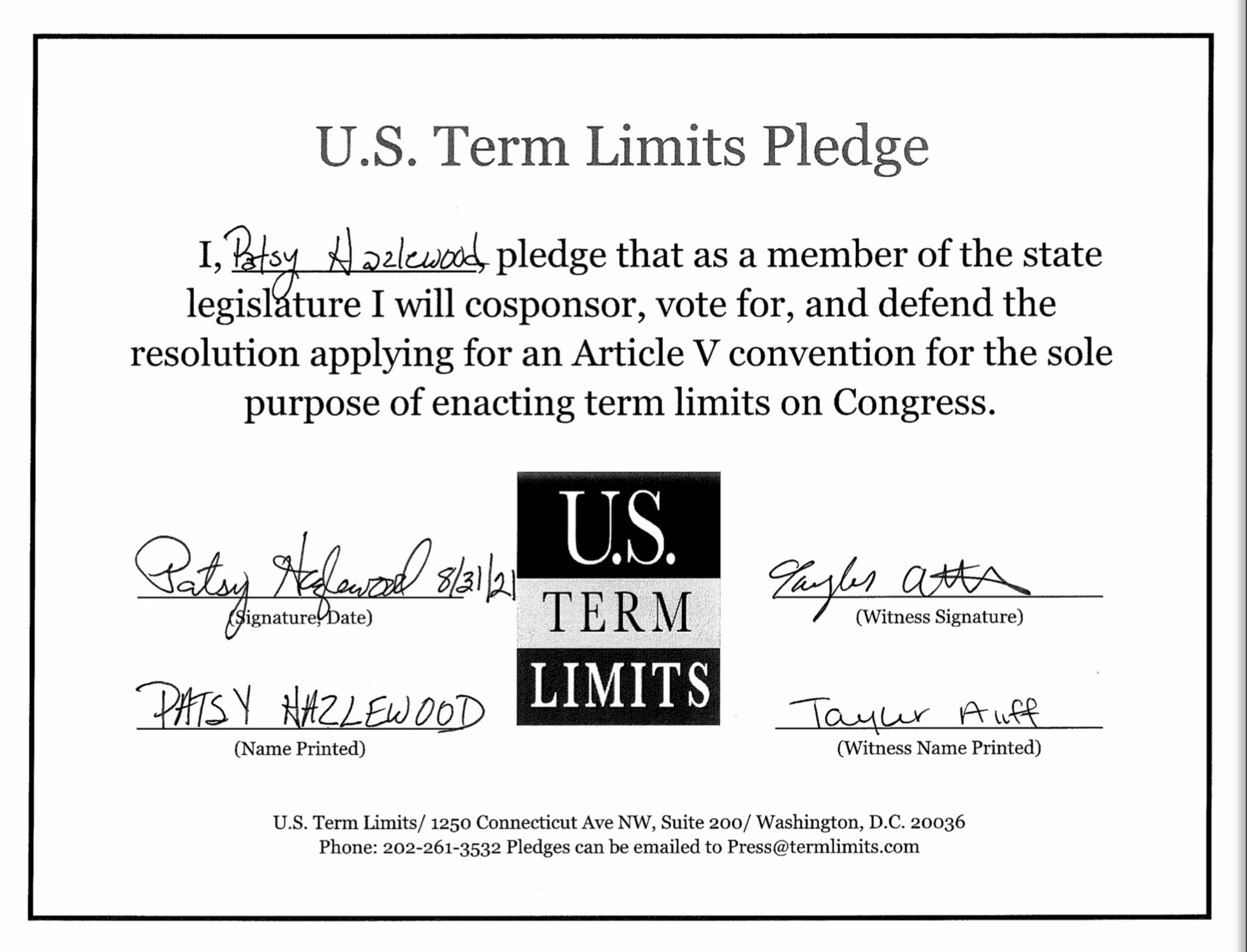 Rep. Patsy Hazlewood Pledges to Support Congressional Term Limits