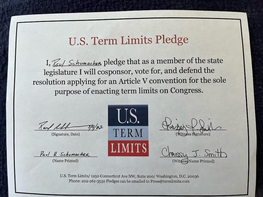Paul Schumacher Pledges to Support Congressional Term Limits