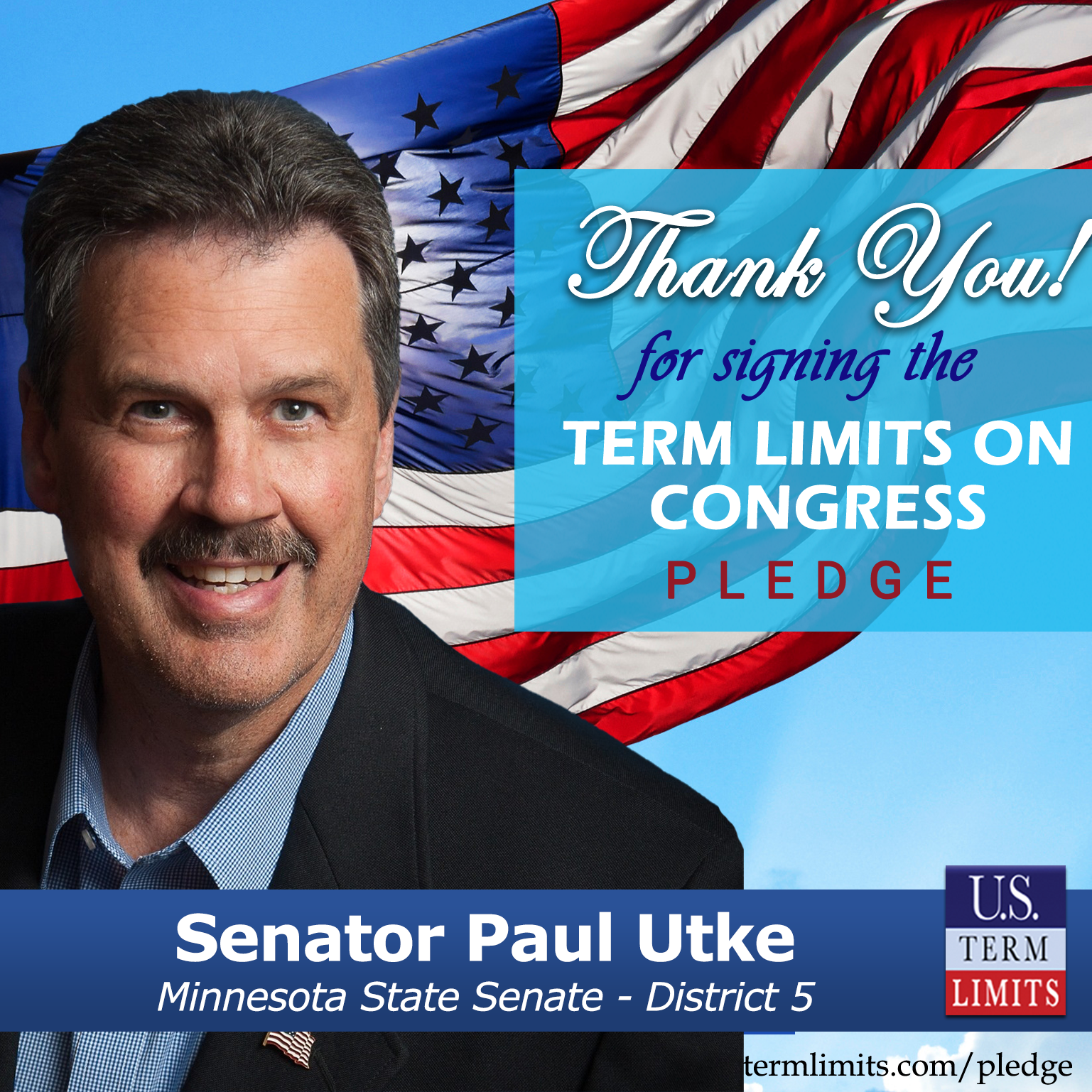 USTL President, Philip Blumel, commented on Utke’s pledge saying, “Paul’s support of term limits shows that there are individuals who are willing to listen to the majority of voters who want term limits. America needs a Congress that will be served by citizen legislators, not career politicians.”