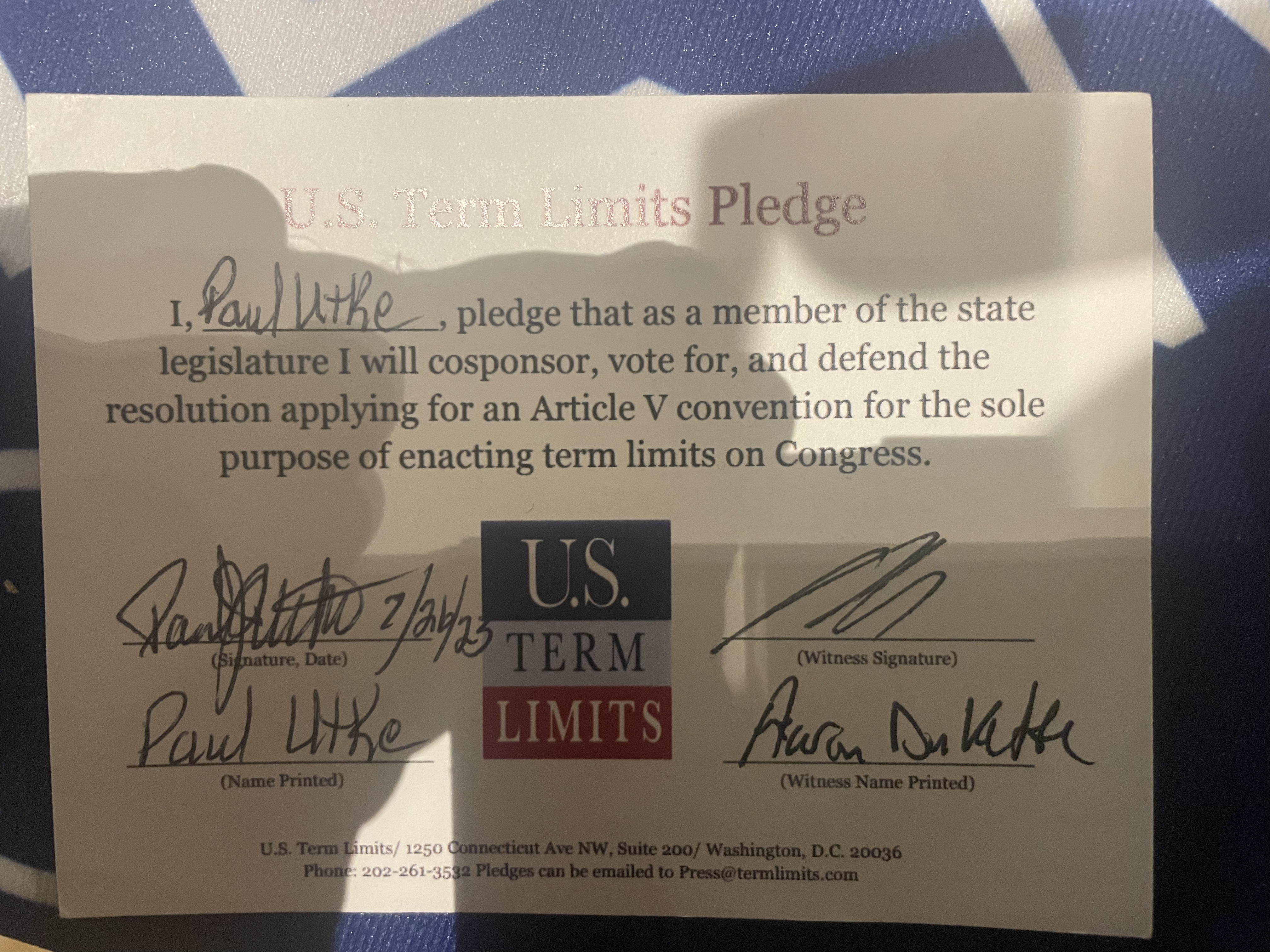 Senator Paul Utke Pledges to Support Congressional Term Limits