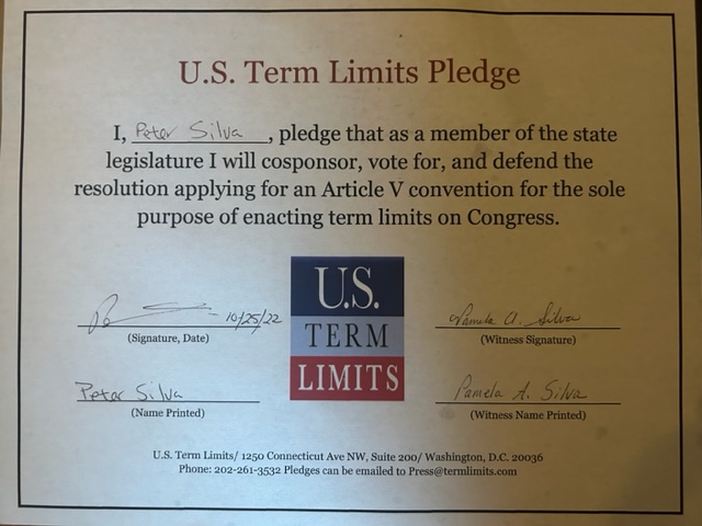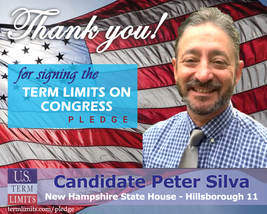 Nashua, NH – U.S. Term Limits (USTL), the leader in the national, non-partisan movement to limit terms for elected officials, is gathering support from state lawmakers across the nation. Its mission is to get 34 states to apply for an amendment proposal convention specific to term limits on Congress. New Hampshire state house candidate, Peter Silva (Hillsborough 11) has committed support for term limits on Congress by signing the Term Limits Convention pledge.