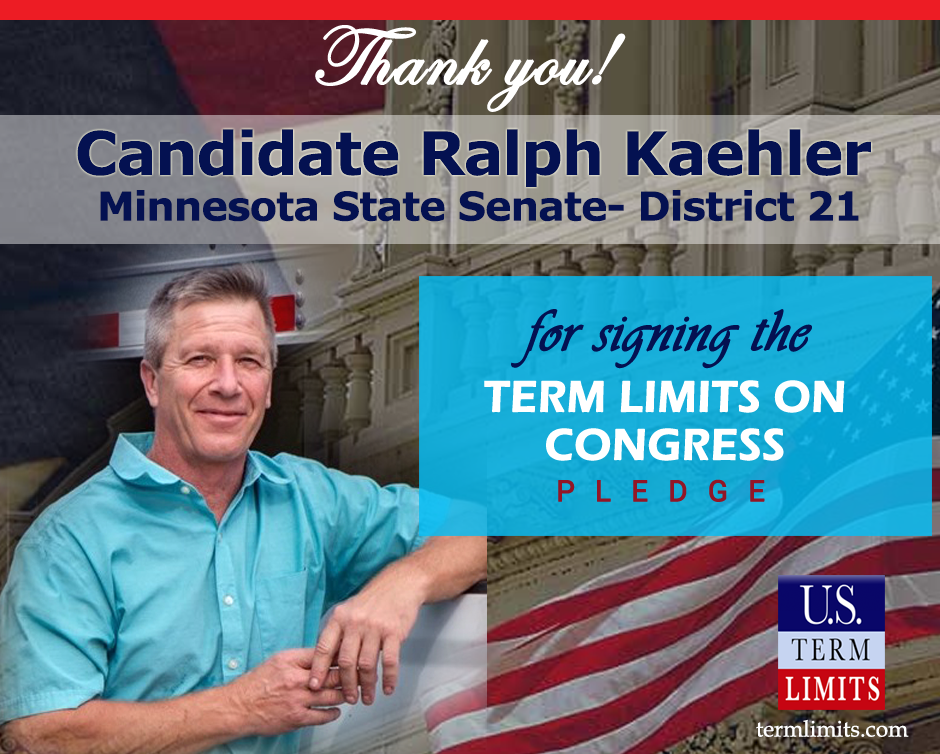 Washington, D.C. – U.S. Term Limits (USTL), the leader in the national, non-partisan movement to limit terms for elected officials, is gathering support from state lawmakers across the nation. Its mission is to get 34 states to apply for an amendment proposal convention specific to term limits on Congress. Minnesota state senate candidate, Ralph Kaehler (district 21), has committed support for term limits on Congress by signing the Term Limits Convention pledge. Kaehler is the first signer in this race. The primary election is scheduled for August 11, 2020.