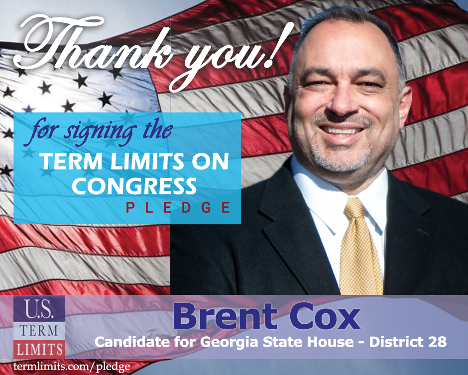 The U.S. Term Limits pledge is provided to candidates and members of state legislatures. It reads, “I pledge that, as a member of the state legislature, I will cosponsor, vote for, and defend the resolution applying for an Article V convention for the limited purpose of enacting term limits on Congress.”