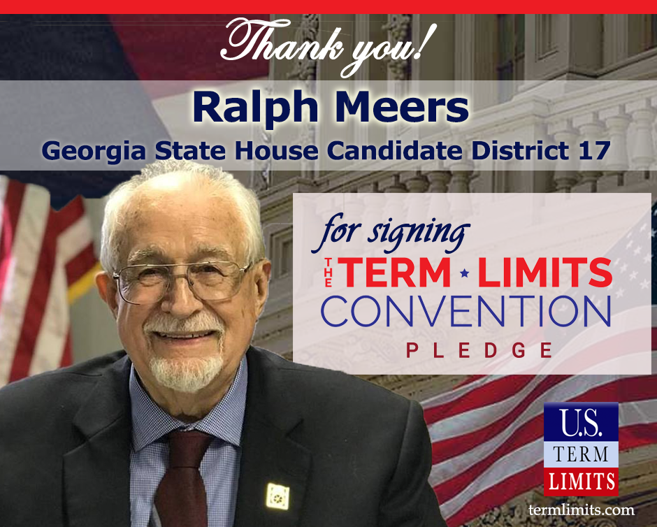 Washington, D.C. – U.S. Term Limits (USTL), the leader in the national, non-partisan movement to limit terms for elected officials, is gathering support from state lawmakers across the nation. Its mission is to get 34 states to apply for an amendment proposal convention specific to term limits on Congress. Georgia house candidate Ralph Meers (district 17), has committed support for term limits on Congress by signing the Term Limits Convention pledge.