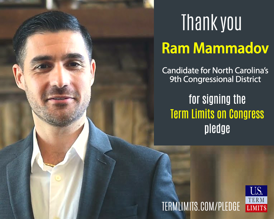 Washington D.C. – U.S. Term Limits (USTL), the leader in the non-partisan national movement to limit terms for elected officials, praises 2022 U.S. house candidate for North Carolina, Ram Mammadov (district 9), for signing the pledge for an amendment to term limit Congress. Mammadov is the first signer in this race.