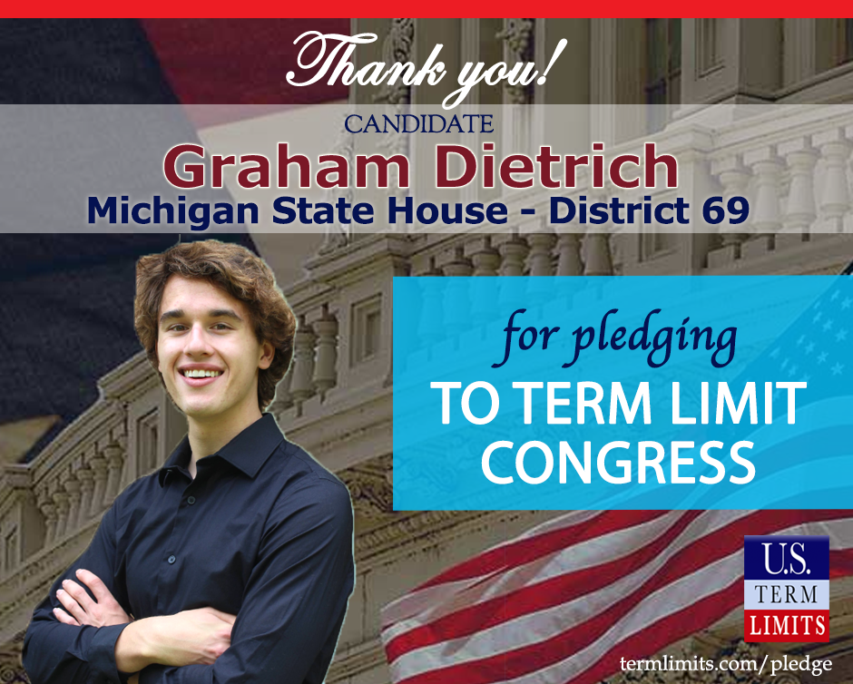 The U.S. Term Limits pledge is provided to candidates and members of state legislatures. It reads, “I pledge that, as a member of the state legislature, I will cosponsor, vote for, and defend the resolution applying for an Article V convention for the limited purpose of enacting term limits on Congress.”