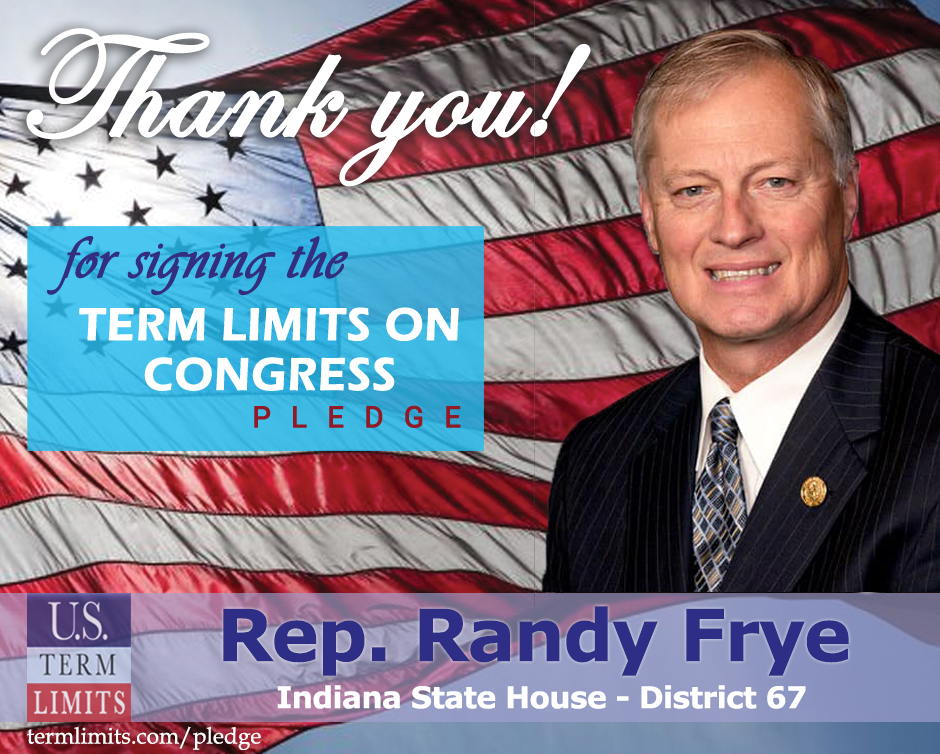 Indianapolis, IN – U.S. Term Limits (USTL), the leader in the national, non-partisan movement to limit terms for elected officials, is gathering support from state lawmakers across the nation. Its mission is to get 34 states to apply for an amendment proposal convention specific to term limits on Congress. Indiana State Rep. Randy Frye (district 67) has committed support for term limits on Congress by signing the Term Limits Convention pledge.