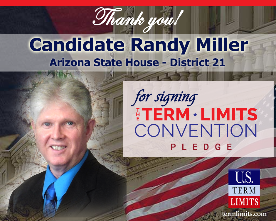 Washington, D.C. – U.S. Term Limits (USTL), the leader in the national, non-partisan movement to limit terms for elected officials, is gathering support from state lawmakers across the nation. Its mission is to get 34 states to apply for an amendment proposal convention specific to term limits on Congress. Arizona house candidate, Randy Miller (district 21) has committed support for term limits on Congress by signing the Term Limits Convention pledge. He is the first person in this race to do so. The primary election is scheduled for August 4, 2020.