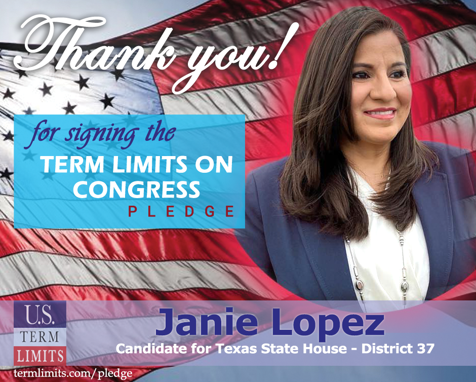 The U.S. Term Limits pledge is provided to candidates and members of state legislatures. It reads, “I pledge that, as a member of the state legislature, I will cosponsor, vote for, and defend the resolution applying for an Article V convention for the limited purpose of enacting term limits on Congress.”