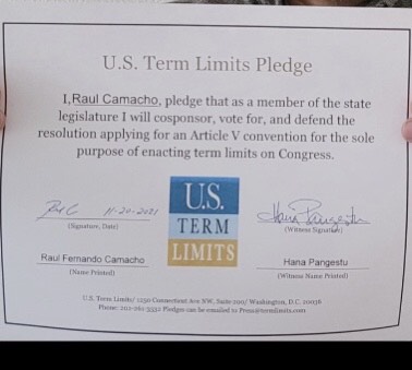 Raul Camacho Pledges to Support Congressional Term Limits