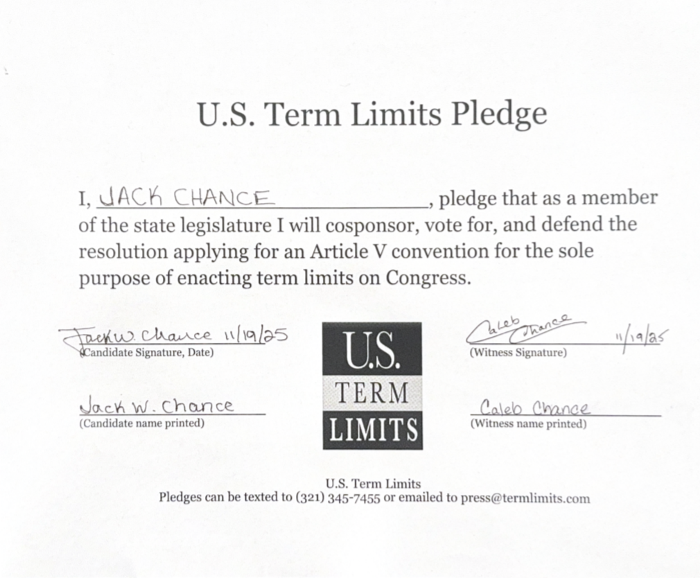 Kokomo, IN – U.S. Term Limits (USTL), the leader in the national, non-partisan movement to limit terms for elected officials, is gathering support from state lawmakers across the nation. Its mission is to get 34 states to apply for an amendment proposal convention specific to term limits on Congress. 2026 Indiana state house candidate, Ray Collins (district 30), has committed support for term limits on Congress by signing the term limits convention pledge. Previously, candidates Paula Davis and Jack Chance also signed.