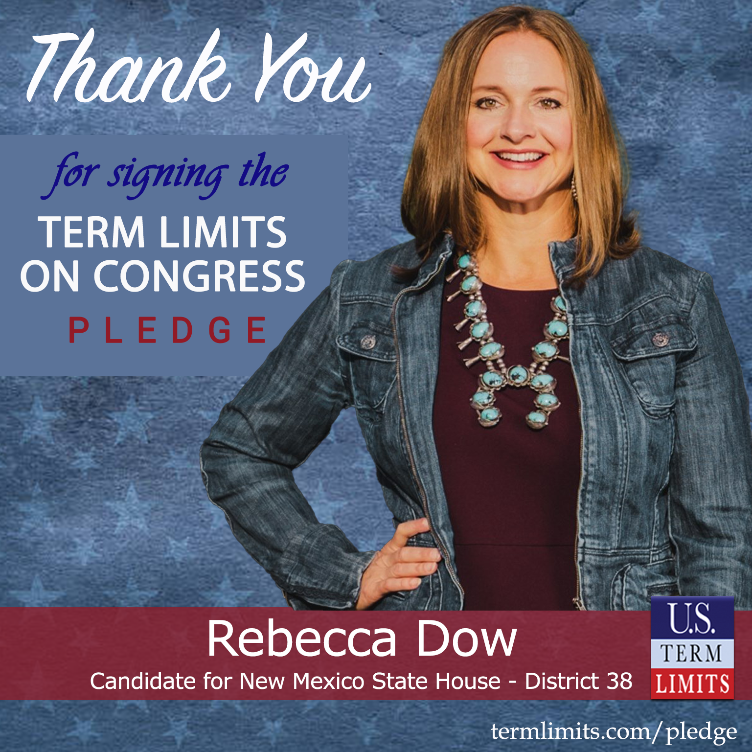 Socorro, NM – U.S. Term Limits (USTL), the leader in the national, non-partisan movement to limit terms for elected officials, is gathering support from state lawmakers across the nation. Its mission is to get 34 states to apply for an amendment proposal convention specific to term limits on Congress. New Mexico state house candidate, Rebecca Dow (district 38), has committed support for term limits on Congress by signing the term limits convention pledge.