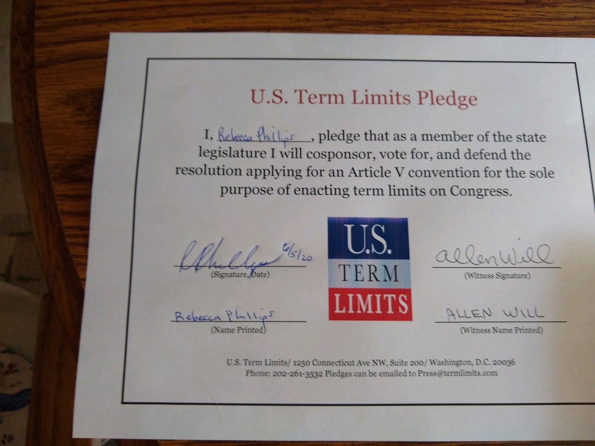 Rebecca Phillips Pledges to Support Congressional Term Limits