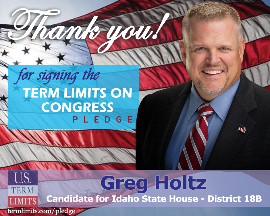 The U.S. Term Limits amendment pledge is provided to every announced candidate for federal office. It reads, “I pledge that as a member of Congress, I will cosponsor and vote for the U.S. Term Limits amendment of three (3) House terms and two (2) Senate terms and no longer limit.” The U.S. Term Limits constitutional amendment has been introduced in both the U.S. Senate by Senator Ted Cruz (SJR1) and the U.S. House by Representative Francis Rooney (HJR20).
