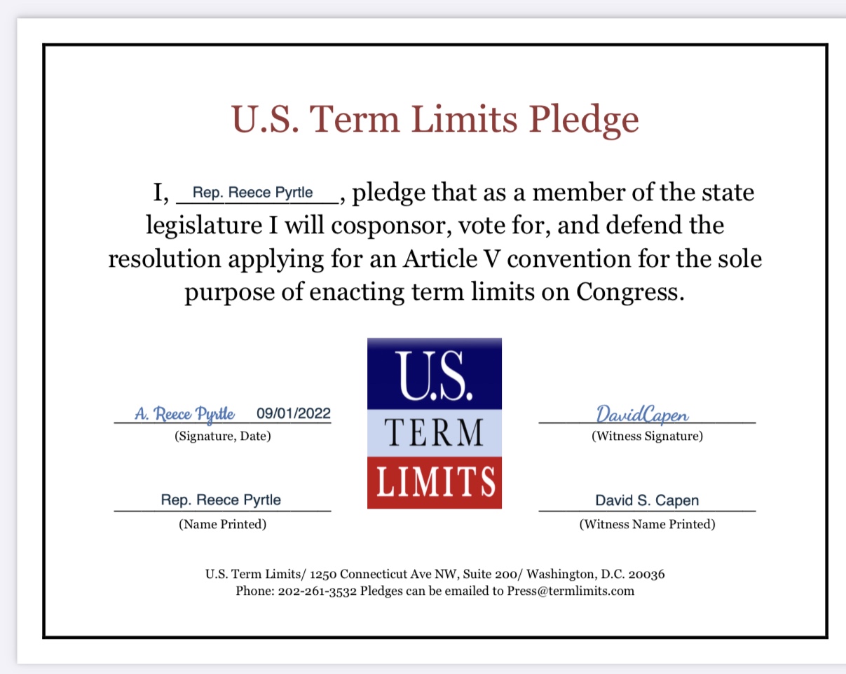 Rep. Reece Pyrtle Pledges to Support Congressional Term Limits