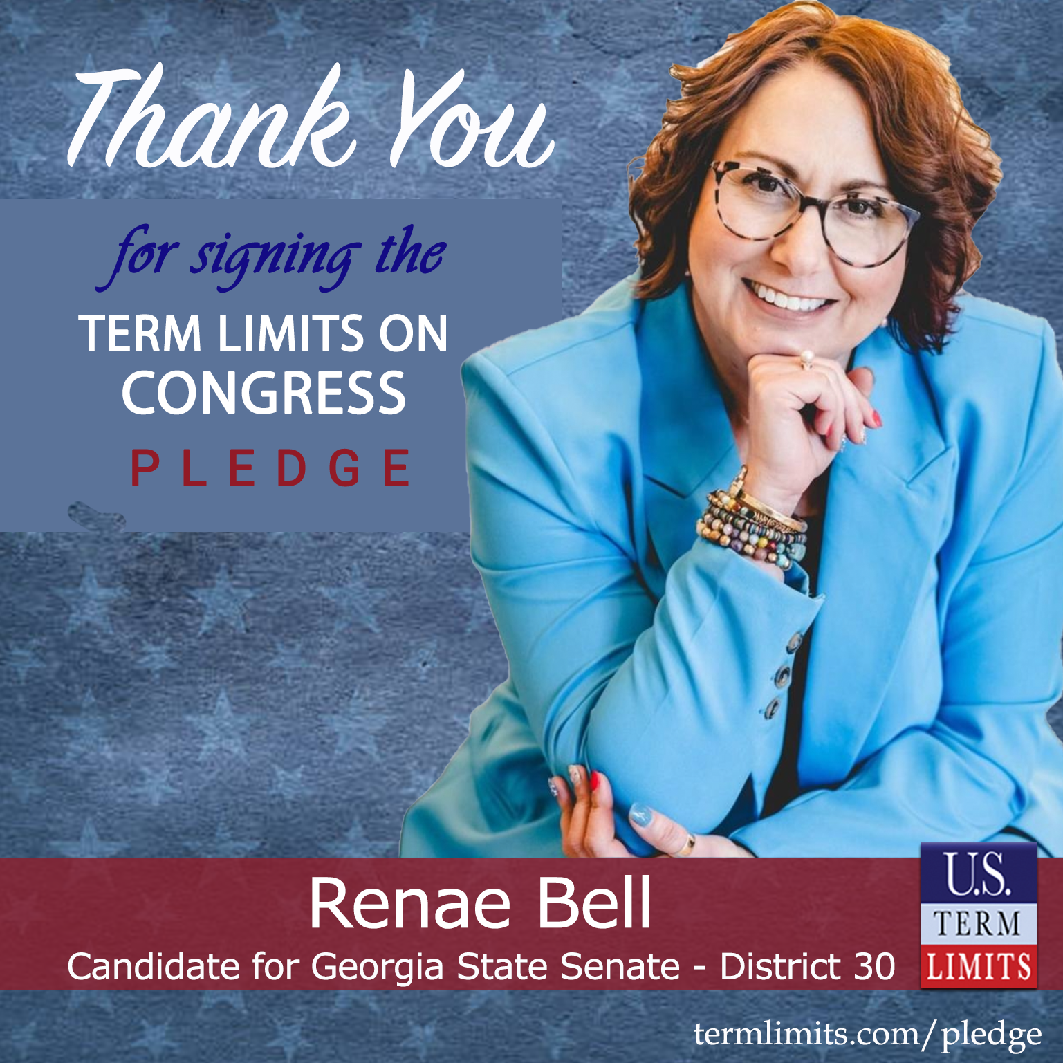 Bremen, GA – U.S. Term Limits (USTL), the leader in the national, non-partisan movement to limit terms for elected officials, is gathering support from state lawmakers across the nation. Its mission is to get 34 states to apply for an amendment proposal convention specific to term limits on Congress. Georgia state senate candidate, Renae Bell (District 30), has committed support for term limits on Congress by signing the term limits convention pledge. Previously, candidate Bob Smith also signed the pledge.
