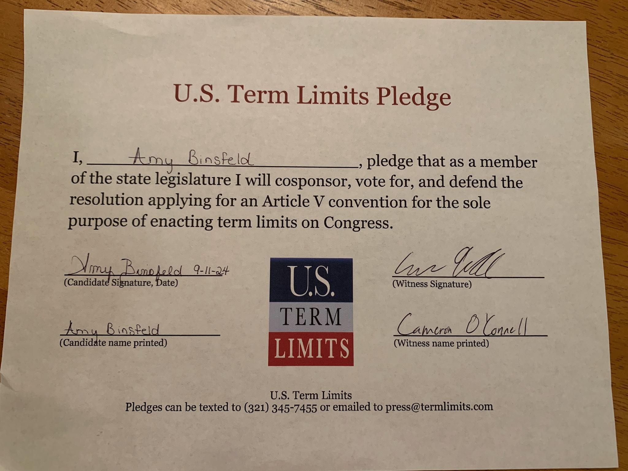 Rep. Amy Binsfeld Pledges to Support Congressional Term Limits