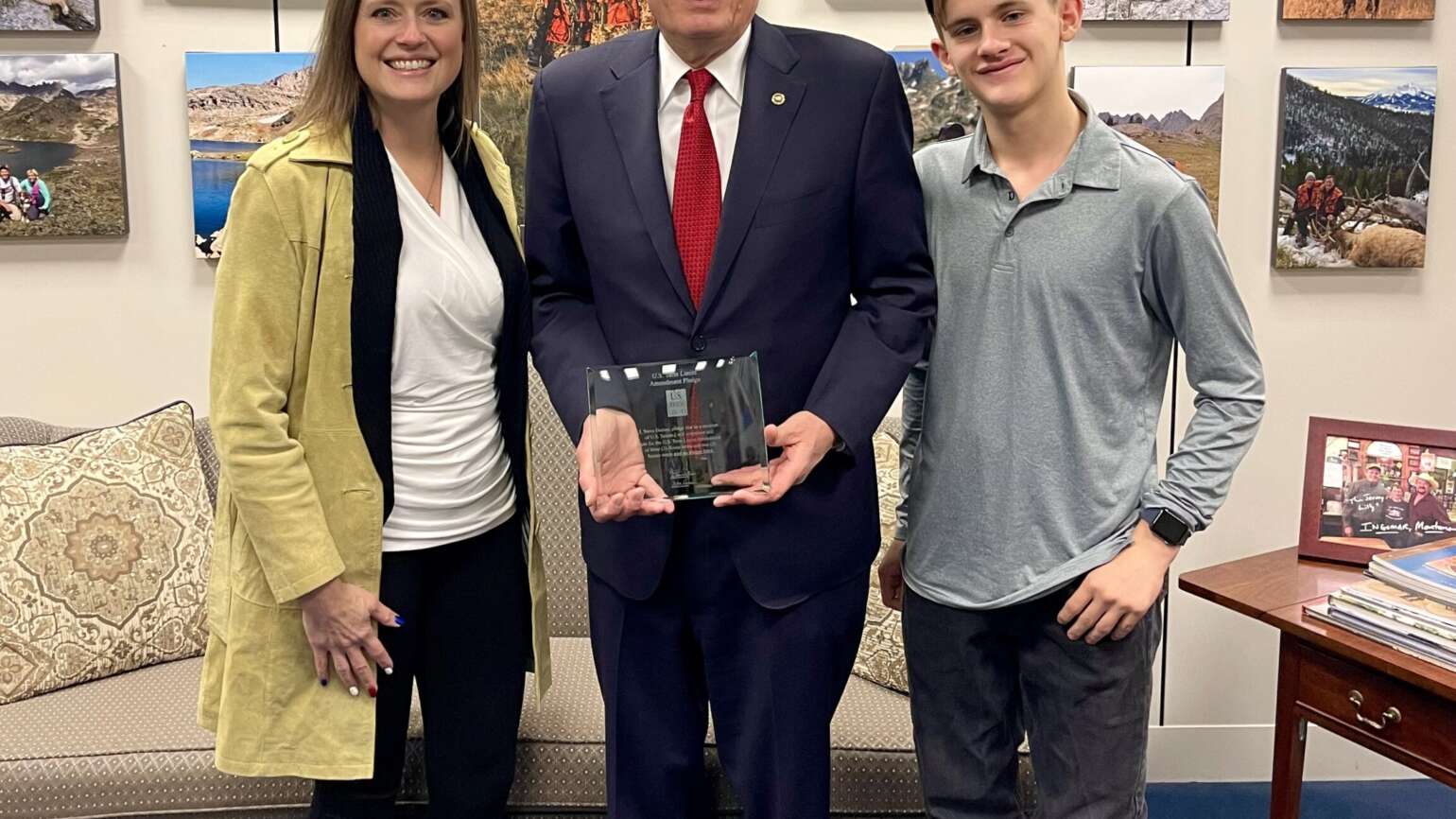 U.S. Term Limits presented Rep. Angela Stiens with the “Champion of Term Limits” plaque, which reads, “In recognition of a steadfast commitment to restore citizen government through term limits.” The U.S. Term Limits Article V convention application is limited to proposing an amendment to set a limit on the number of terms that a person may be elected as a member of the U.S. House and Senate. The Article V convention application does not specify the number of terms as that will be determined by the commissioners appointed to the convention by the state legislatures.