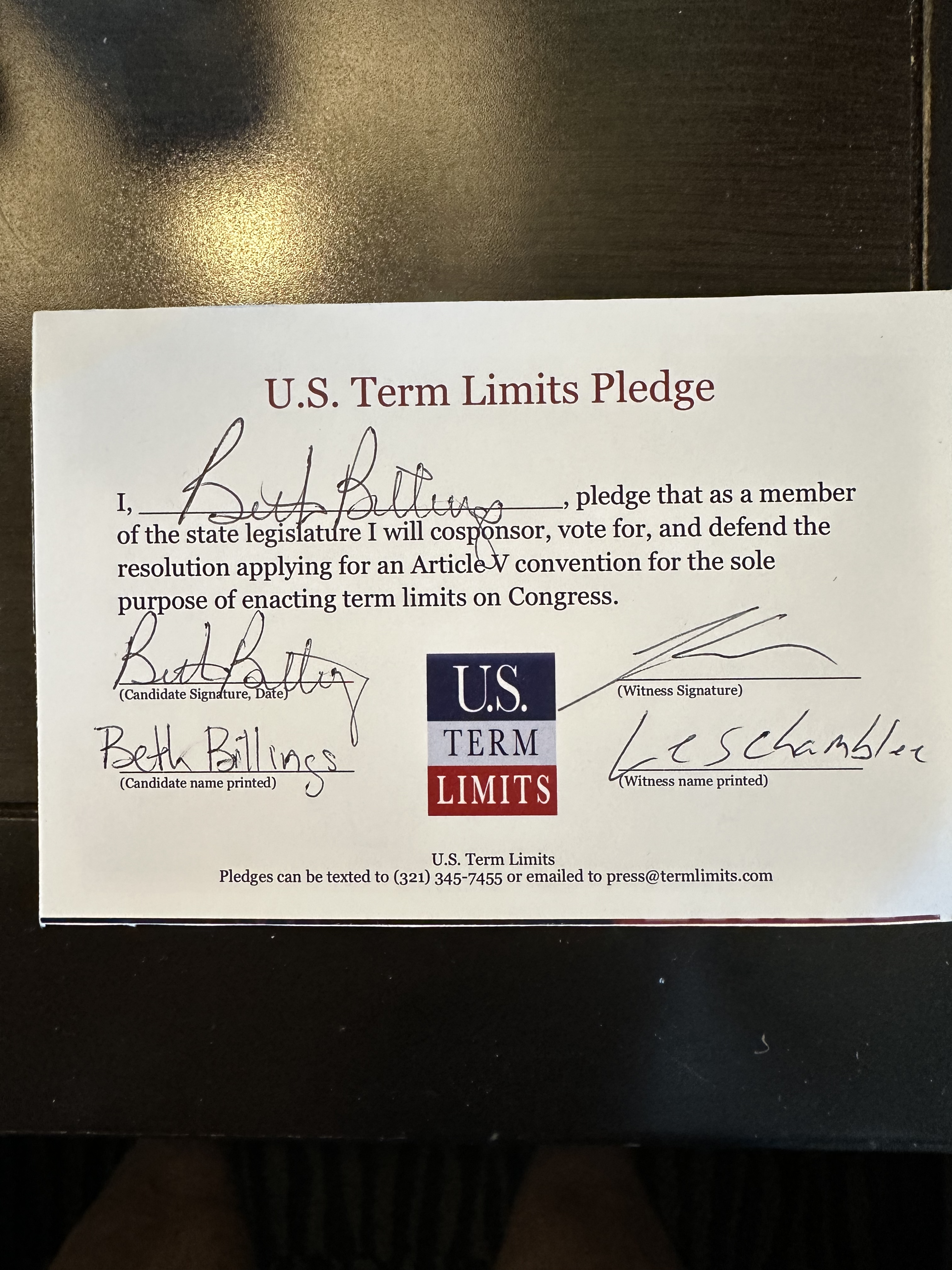 Rep. Beth Billings Pledges to Support Congressional Term Limits