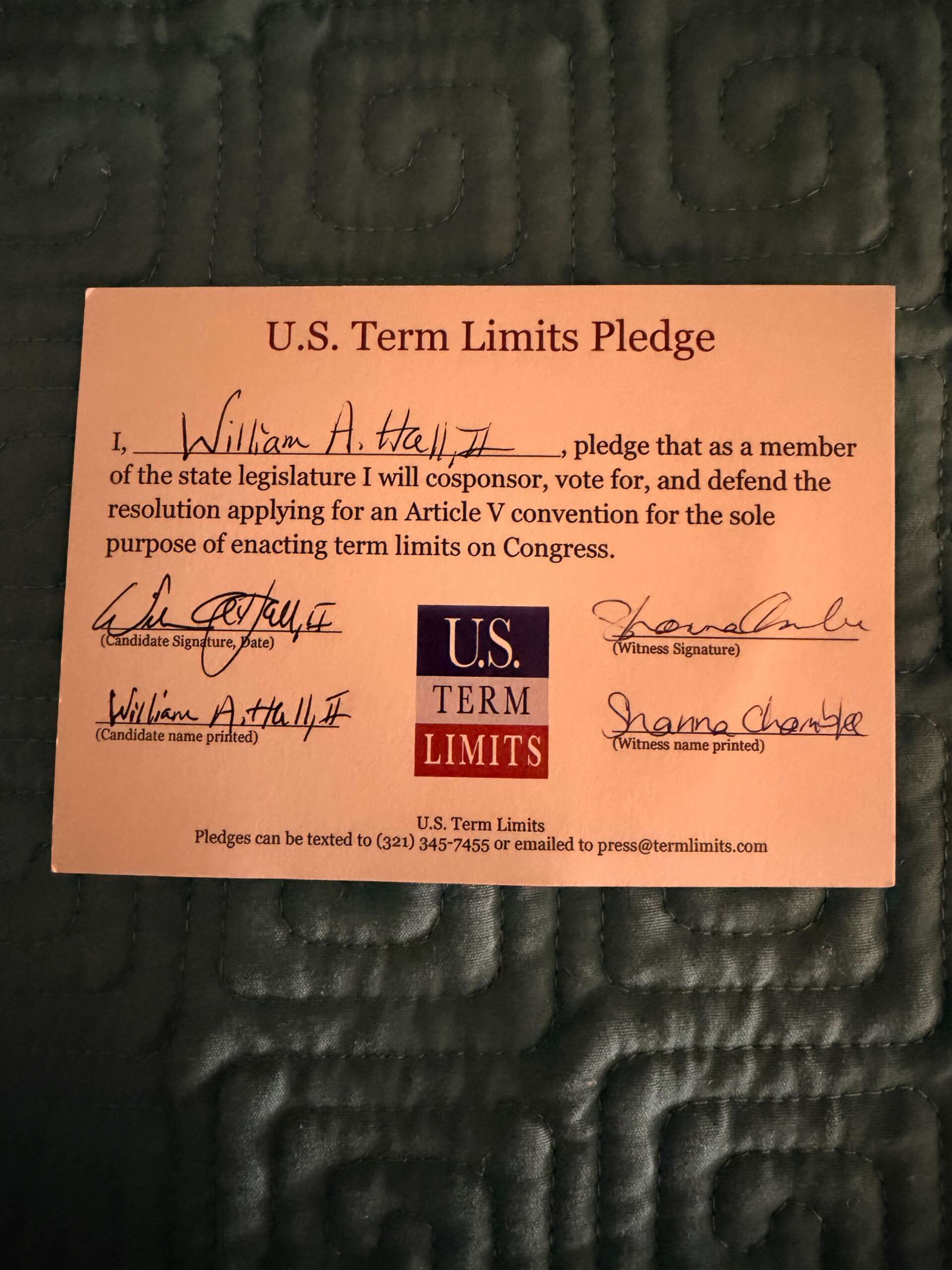 Rep. Bill Hall Pledges to Support Congressional Term Limits